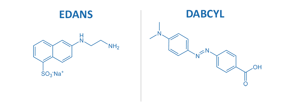 The BIOSYNTAN portfolio includes various FRET pairs, which can be placed at the N- and C-terminal region of the peptide substrate. A small selection is listed below. Please inquire for any different types of FRET substrates.
