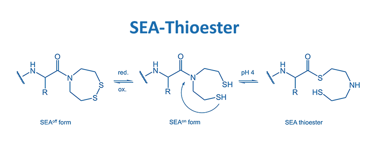 The SEA-thioester is delivered in the storable SEAoff-form, which is easily converted into the active thiolester by reduction with TCEP.