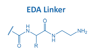 Analogues to cysteamines, the EDA linker can be applied in order to couple the peptide to carboxylic acid groups.